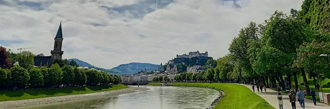 Salzburg to miasto historyczne, z licznymi zabytkami, z dominującą nad miastem i będącą jego symbolem średniowieczną twierdzą Hohensalzburg. Warto zostawić na kilka godzin rowery, żeby wspiąć się do tej okazałej twierdzy o blisko tysiącletniej historii. Widok na rozciągające się z każdej strony Alpy i rozłożone u podnóża zamku miasto zachwyca.