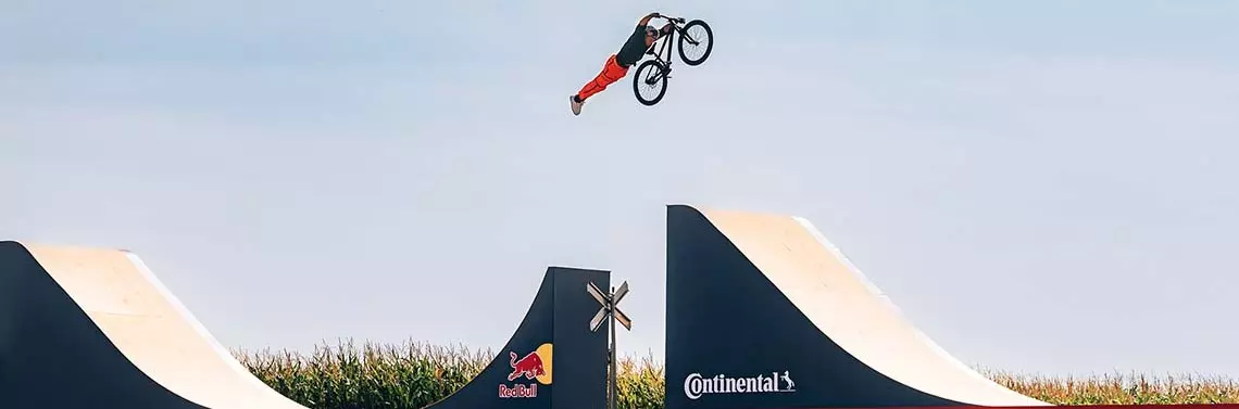 Dawid Godziek, aktualny mistrz świata freestyle MTB, w ramach projektu Red Bull Bike Express, pokonał na rowerze specjalny tor zbudowany na jadącym pociągu, wykonując przy tym szereg ewolucji.