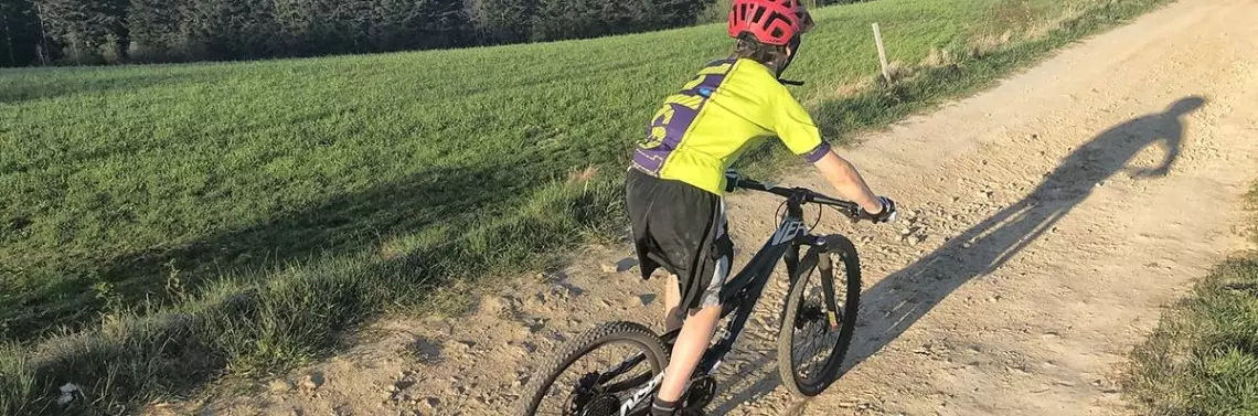 Rower był testowany przez jedenastoletniego Maćka, na co dzień jeżdżącego na lekkim, karbonowym hardtailu na kołach 27.5'' o odpowiednio małej ramie. Chłopak lubi pojeździć w terenie, ale najbardziej cieszą go ścieżki typu flow, gdzie doskonale radzi sobie na bandach i coraz lepiej skacze na stolikach. Maciek, pomimo tego że ma odrobinę powyżej 150 cm wzrostu, mógł jeszcze używać Nerda na fabrycznych kołach 24”, choć trzeba przyznać, że 26” byłyby chyba lepsze.