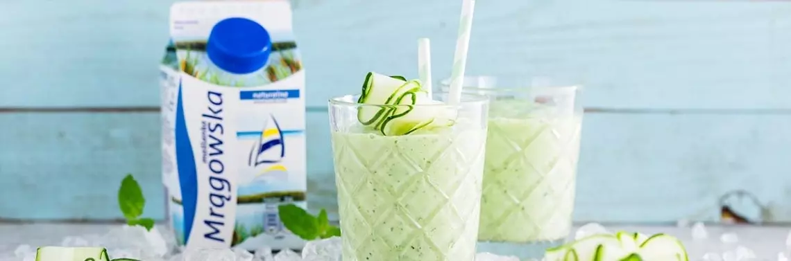 Maślankowo-owocowy koktajl najlepiej smakuje mocno schłodzony.
