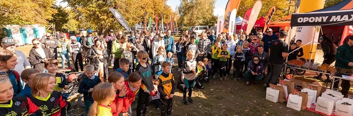 Ale emocje w miasteczku zawodów nie zakończyły się na sobotnim losowaniu nagród i ognisku. W niedzielę odbyły się pierwsze zawody enduro dla dzieci w wykonaniu organizatorów cyklu Enduro MTB Series czyli Eightshot MTB Race. Trzeba tu zaznaczyć, że tym razem nie były to niewinne gonitwy po płaskiej parkowej trasie, a prawdziwe enduro!