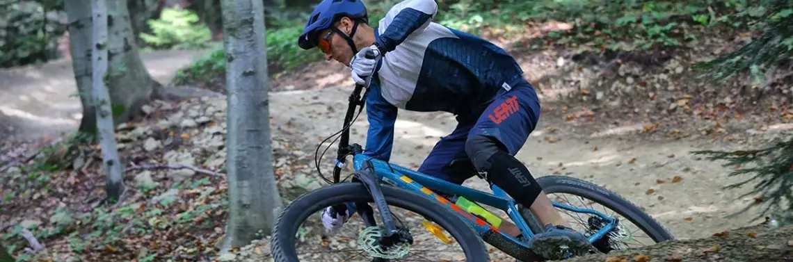 Nowy Roscoe nie pozostawia złudzeń co do przeznaczenia. W teście poprzedniej wersji (nr 3/2021) mogliście przeczytać, że Trek Roscoe to rower przyjazny i niewymagający pod kątem sterowania. Teraz jest inaczej, tzn. jest przyjazny, jeśli umiesz na tę przyjaźń zasłużyć dobrą techniką i odwagą. Przy mniejszych prędkościach rower jest bardzo wrażliwy na ruch kierownicą, wręcz nerwowy. Pozwala to na jazdę z precyzją chirurgicznego skalpela i na technicznych, powoli pokonywanych fragmentach zjazdów, można sterować przednim kołem z dokładnością do milimetrów. Przy większych prędkościach precyzja skrętu jest nadal niebywała, ale musi być poparta dobrym ustawieniem się na długim rowerze. Wyjścia z zakrętów na Roscoe to wielka radocha, wystarczy nieco odpuścić docisk w skręcie i wyjeżdżamy niczym wystrzeleni z katapulty, by zaraz złożyć się na kolejnej bandzie. Bez umiejętności szybkiego balansowania środkiem ciężkości i wpływania w ten s...
